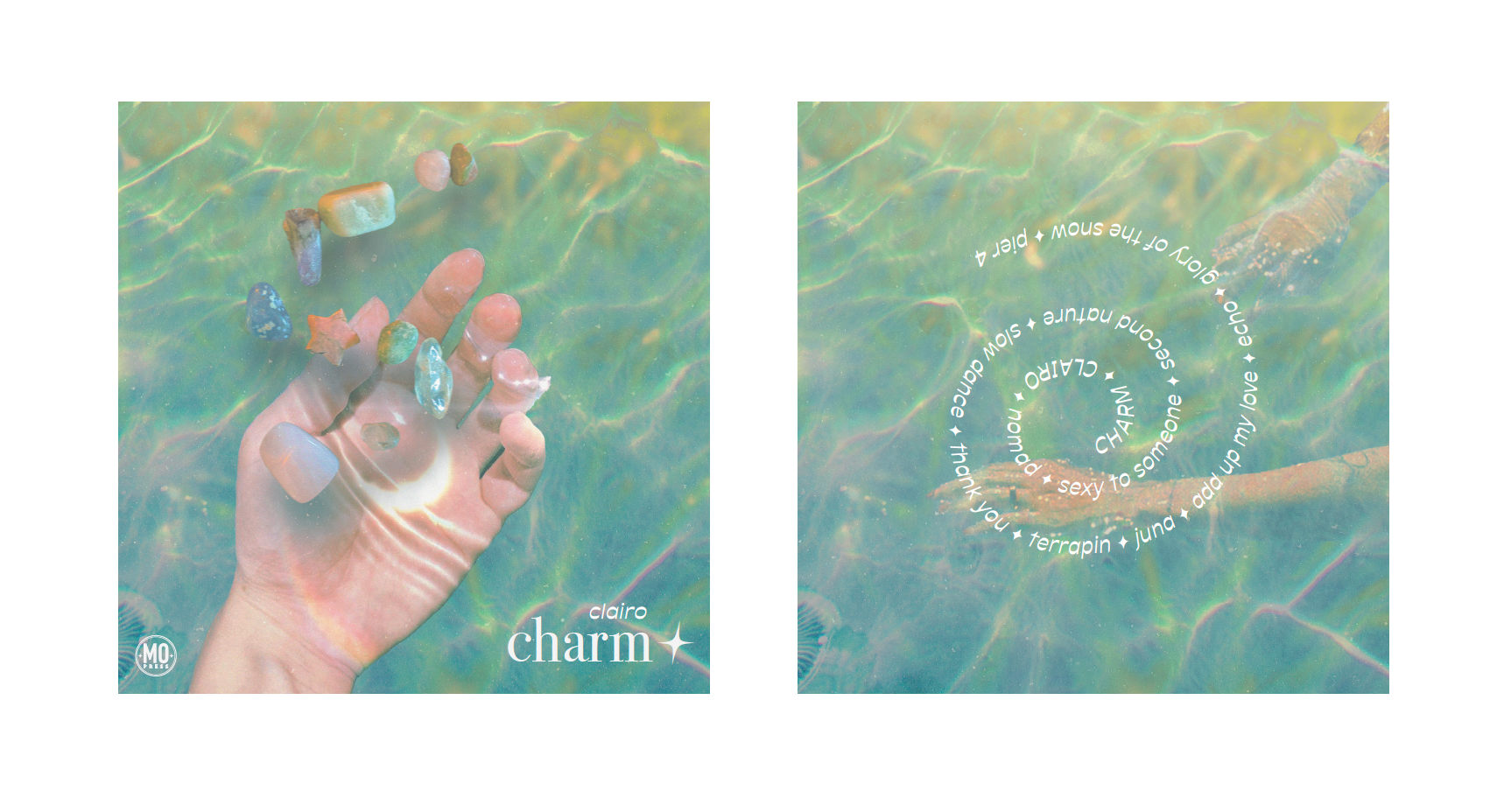 For this project, I was tasked with selecting a favorite album of mine and redesigning it, incorporating a photographic element from a previous step of the assignment. I selected the album Charm by Clairo and tried to emphasize the tranquil nature of the songs through my manipulation of the photos and colors.