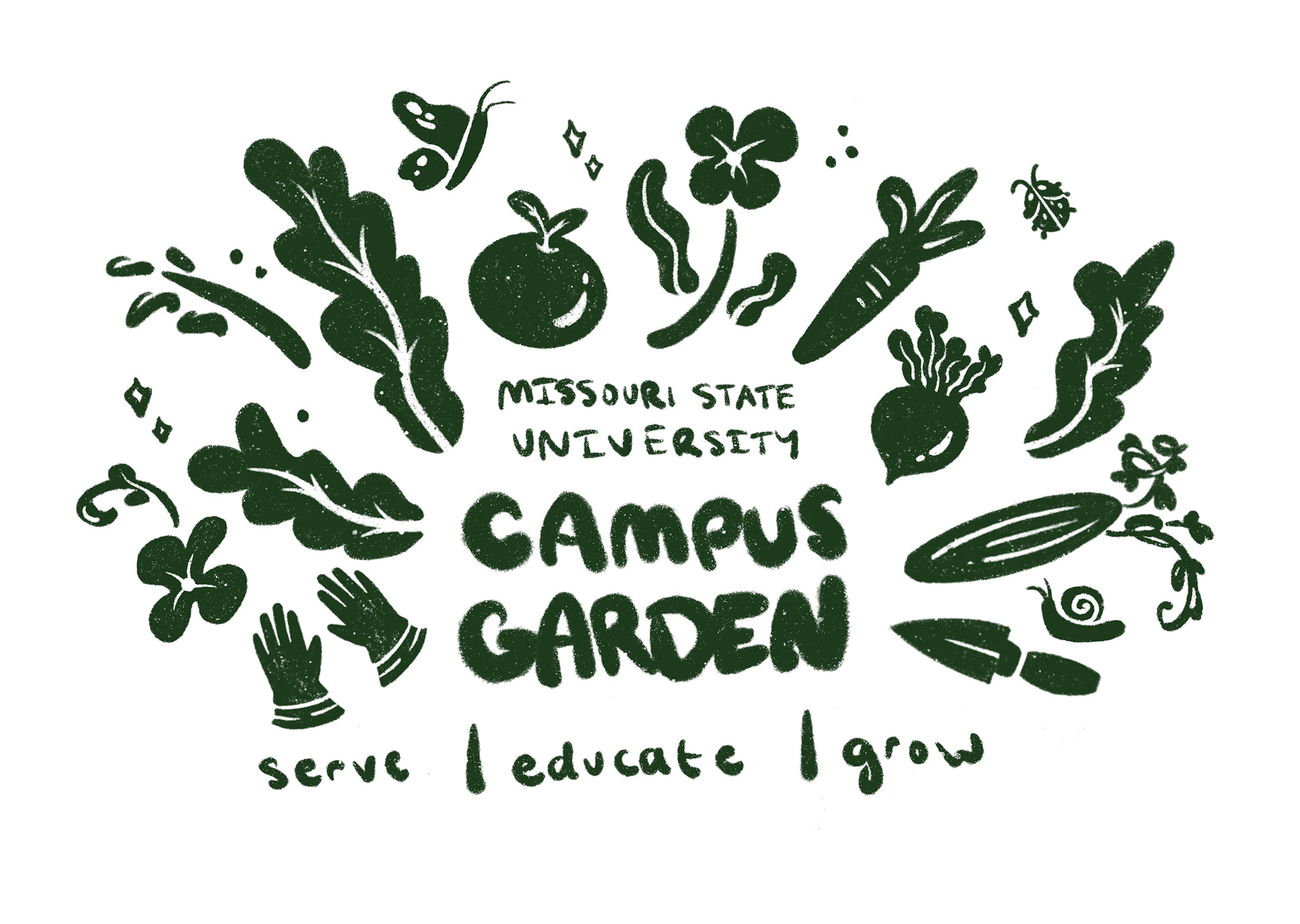 As the social media/community engagement manager for Missouri State University's Campus Garden, I was tasked with redesigning our previous logo to rebrand and create new merchandise.