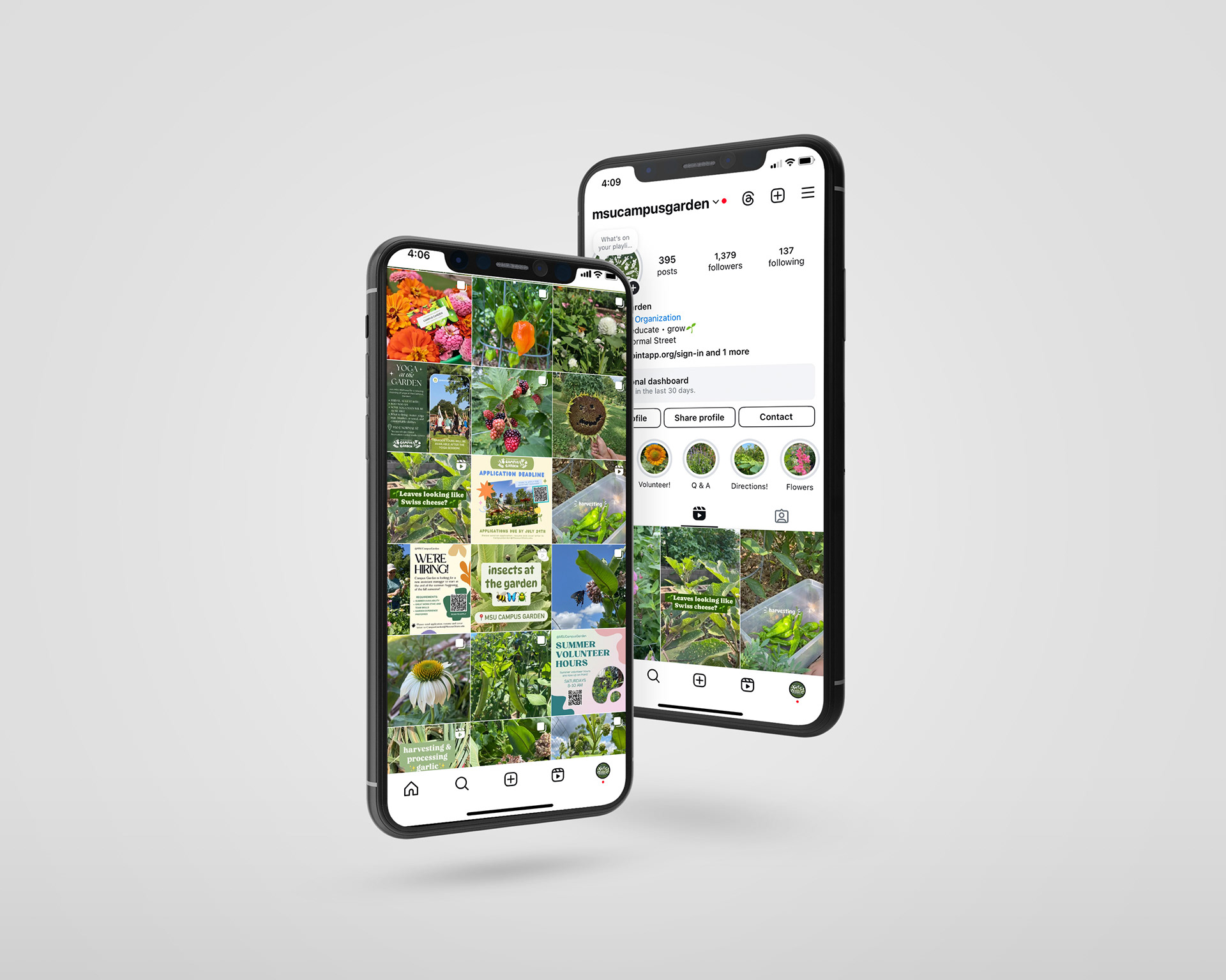 Another role of mine in my work for Missouri State's Campus Garden was running and curating our social media accounts. My goal with my photography, infographics, and posts on our Instagram and Facebook pages was to incorporate our brand colors as much as possible and create fun, eye-catching spreads that would foster engagement.