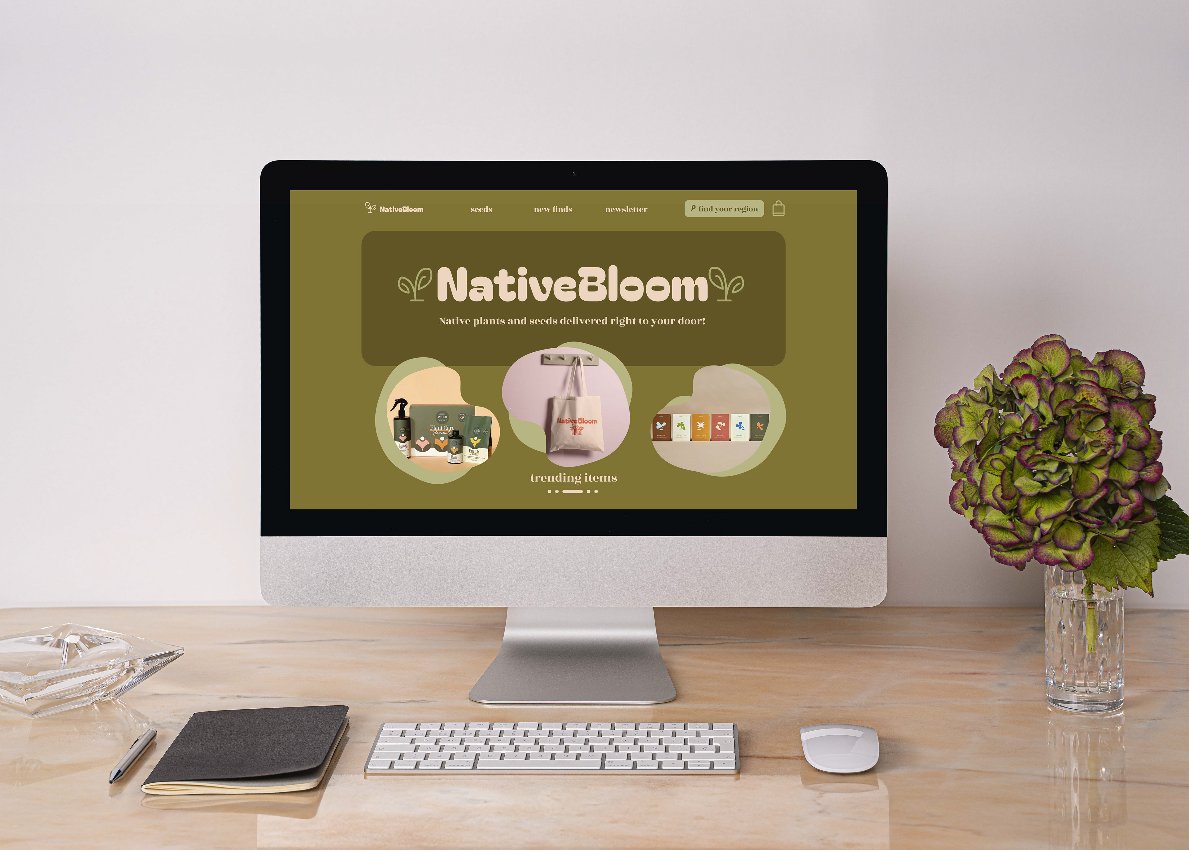Our group came up with NativeBloom, a plant sale service that tailors seed and flower orders to the customer's region, as well as sells merchandise and plant care items for avid plant parents. The goal of the site was to make purchasing plant seeds an easier, more personalized process that gave customers access to seeds and plants that would thrive in their particular region of the United States.
